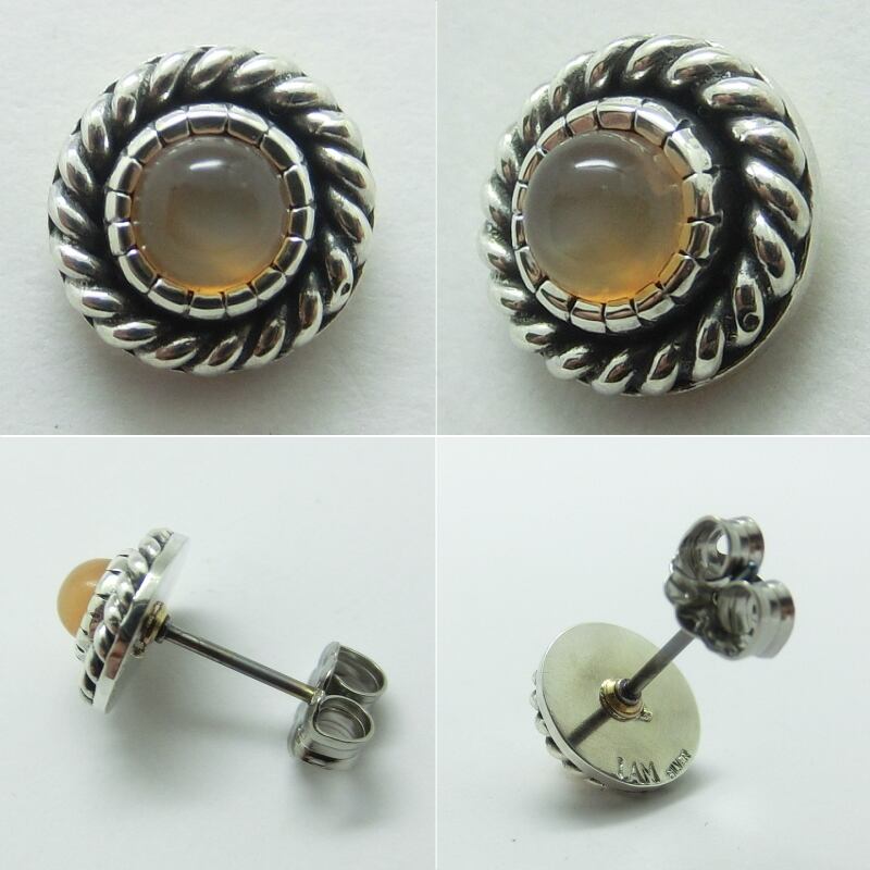 オレンジムーンストーンの魅力をネイティブライクなシンプルデザインでお楽しみ頂けますシルバー925製のスタッドピアスです。