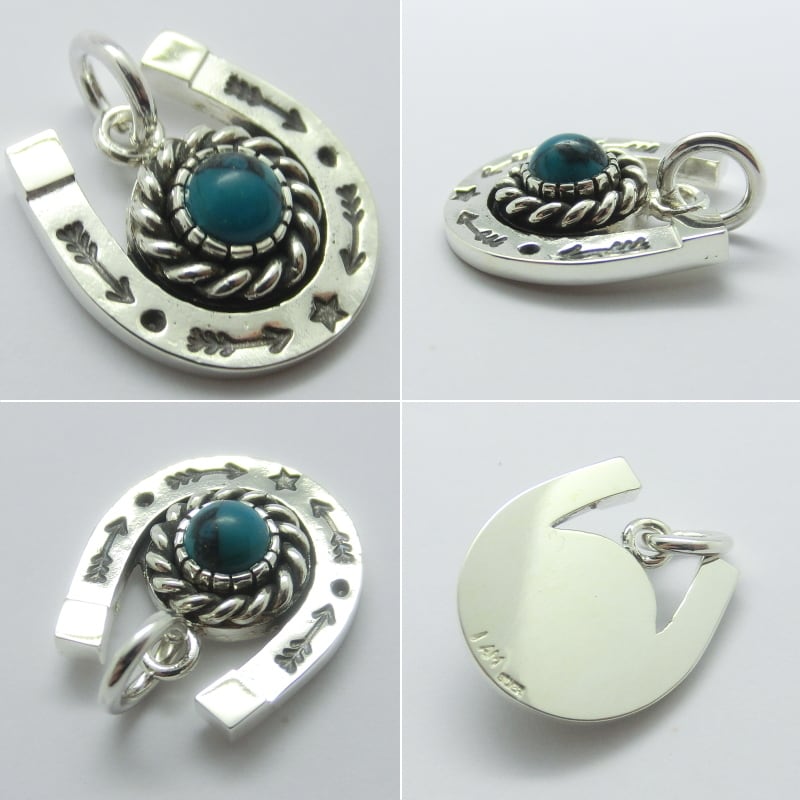 お守り感もプラスしてターコイズにラッキーモチーフ、馬蹄デザインをお楽しみ頂けますシルバー925製のペンダントです。