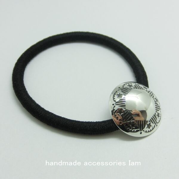 スタンプを打ち込み太陽をイメージ致しましたコンチョのアクセントをお楽しみ頂けるへアゴムブレスレットです。