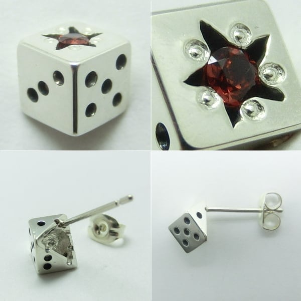 ガーネットのさりげない輝きに、シンプルにサイコロのアクセントをお楽しみ頂けますスタッドピアスです。