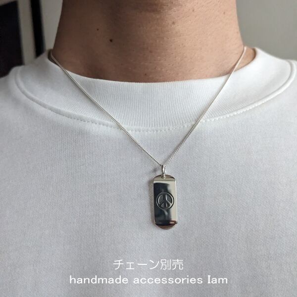 スケートボードをイメージしたプレートにピースマークのアクセントをお楽しみいただけるペンダントです。