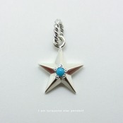 ターコイズにスタッズスターのアクセントをお楽しみ頂けますシルバー925、スターリングシルバー製のペンダントです。チェーンを通すカンは、ねじり丸カン。石はミル打ちでお留めしております。丁寧に磨きあげたシルバーの光沢感も是非お楽しみ下さい。モデル着用の参考ネックレスチェーンは、2.0mmボールチェーン45cmを合わせてみました。ネックレスチェーンは別売になります。ターコイズは古代より神聖な石として魔よけや厄よけのために身につけられ、繁栄と幸運をもたらす石、勇気と決断力を授ける石とされています。またネガティブなエネルギーを払いのけ、困難を乗り越えて願望を達成するためのサポートをしてくれるパワーストーンといわれています。ターコイズは、天然石使用につき掲載画像と多少模様色味等異なります。予めご了承下さいませ。お守り感覚でお洒落のアクセントに是非お楽しみ下さいませ。