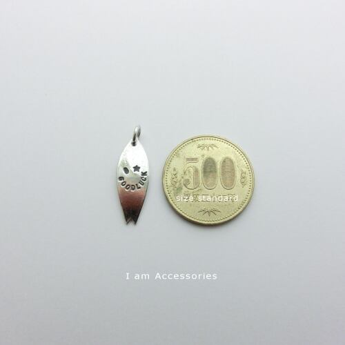 シンプル、スタイリッシュなフォルムのサーフボードペンダントです。地金素材はシルバー925、スターリングシルバー製になります。ボード中央にはスマイルマークをイメージしたアクセントをプラス致しました。GOOD LUCKにスターのやんちゃなスマイルデザイン。ペンダントの表面はマットな素材感を生かした風合いに仕上げています。