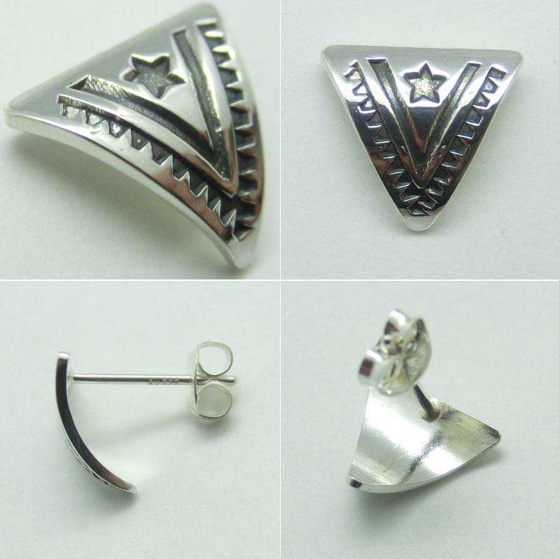 ネイティブライクなデザインをお楽しみ頂けますトライアングル形のスタッドピアスです。
